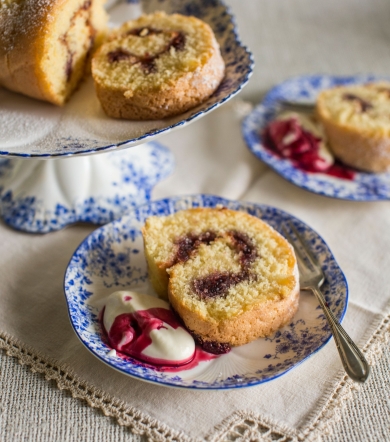 Remove from the oven and place onto a large piece of greaseproof paper sprinkled with icing sugar. Spread the whole cake with the boysenberry jam and roll it up tightly.